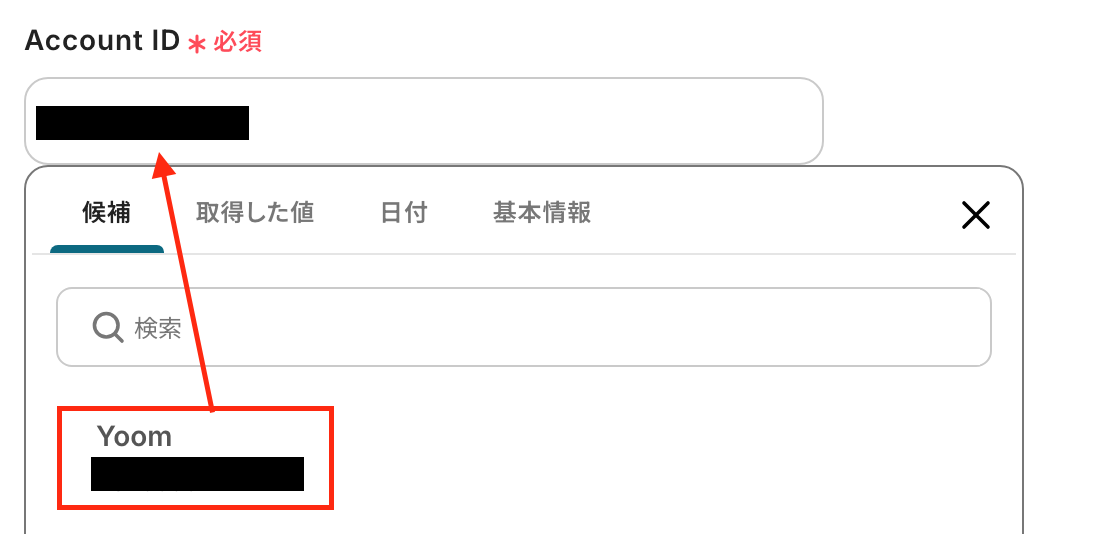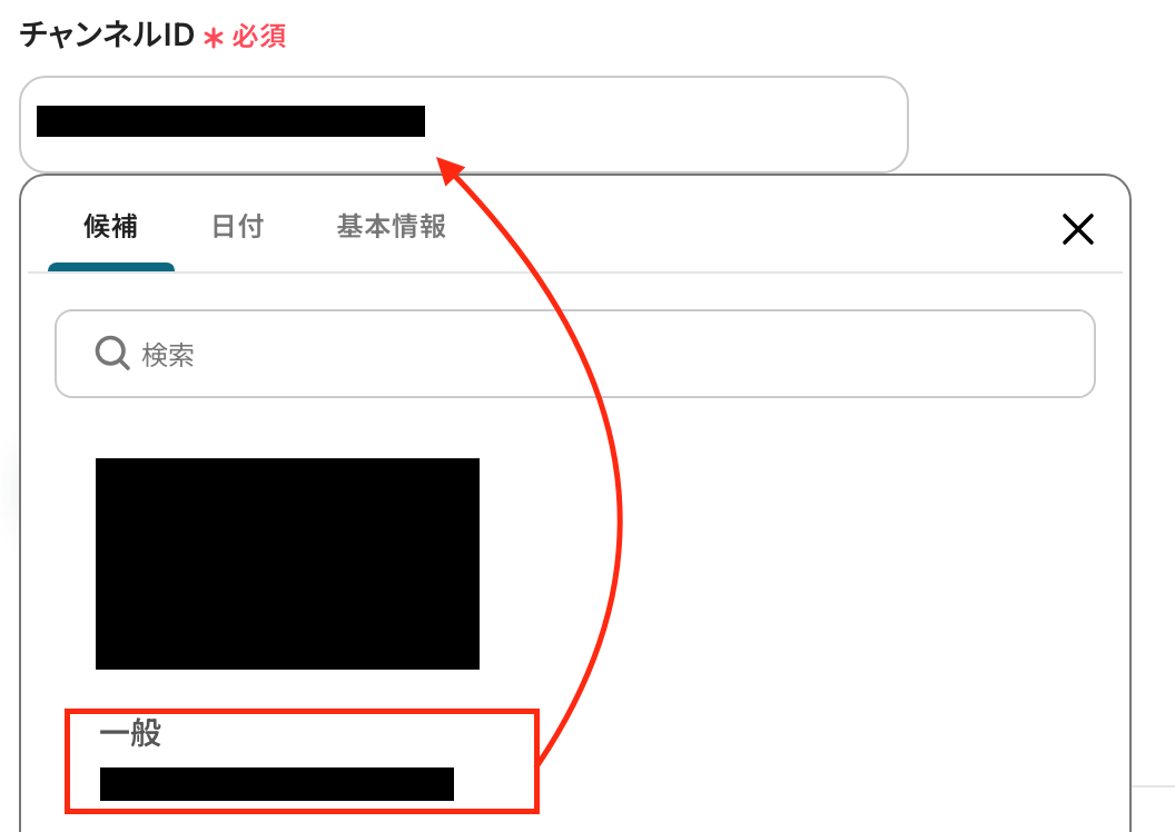 「チャンネルID」:入力欄をクリックして表示される候補から選択します。