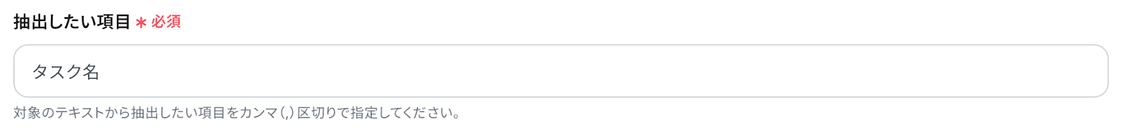 ここでは、対象のテキストから抽出したい項目をカンマ(,)で区切り、指定します。