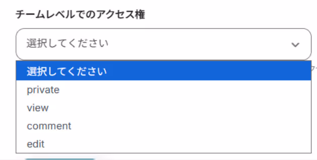ボードの公開レベルとチームレベルでのアクセス権は、注釈に従って任意で選択します。