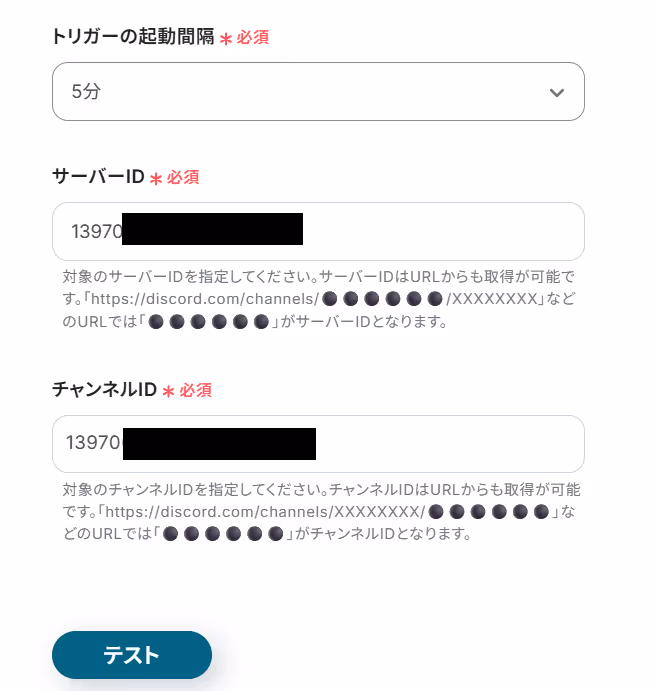 サーバーIDとチャンネルIDを注釈に従って入力してください。