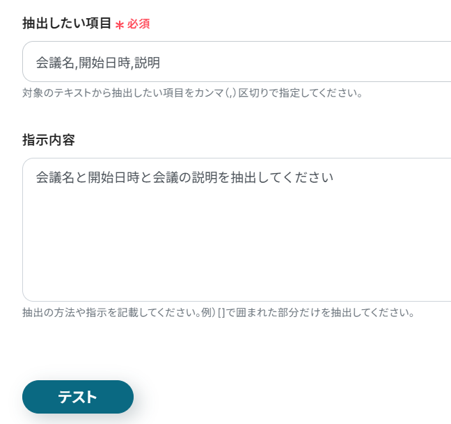 抽出したい項目と指示内容を注釈に従って入力しましょう。