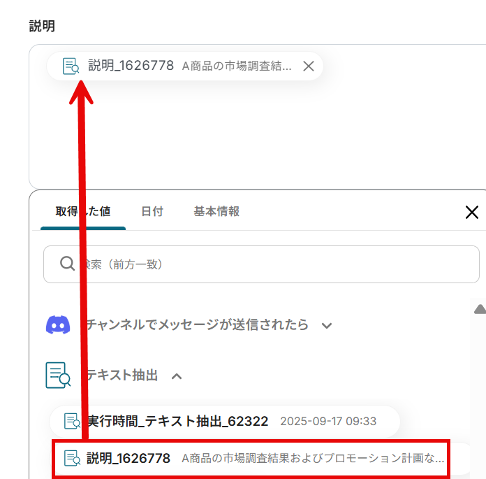 この時「←テキスト抽出で取得した説明の値を引用してください」という一文は削除しましょう。