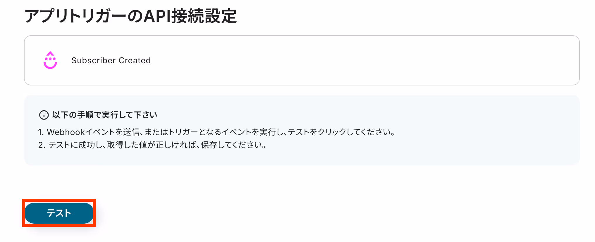 トリガーアクションは、テンプレート通りに「Subscriber Created」のままで大丈夫です。