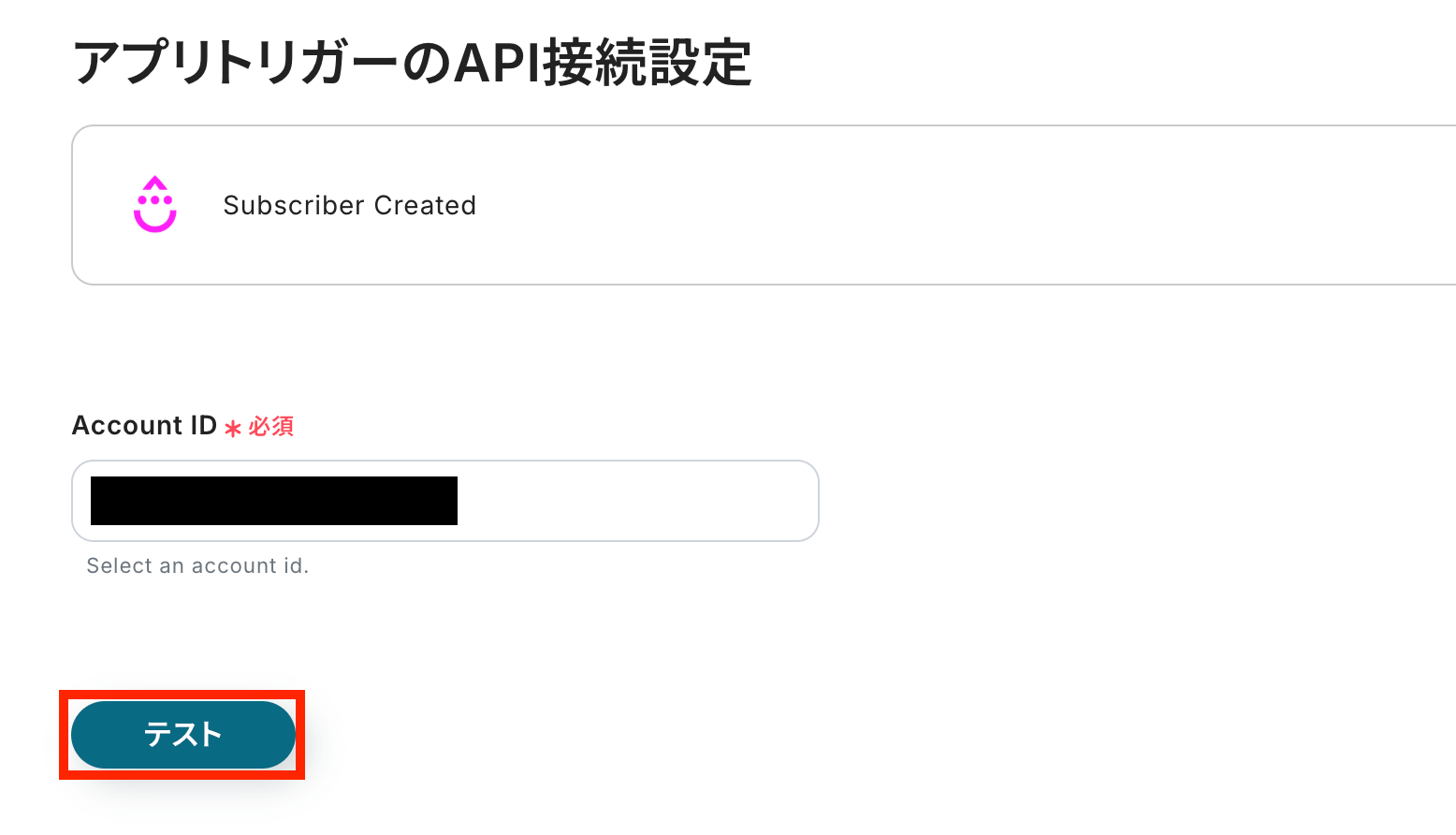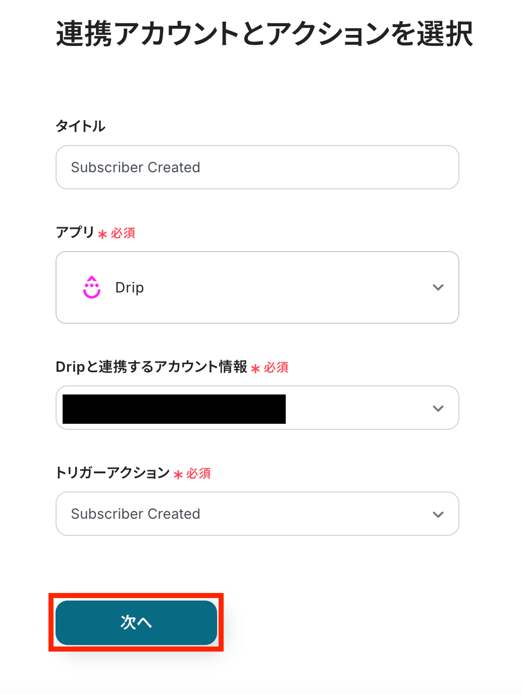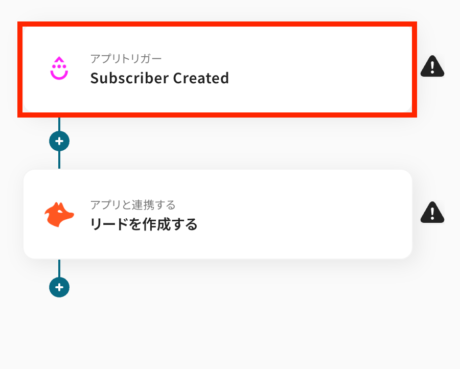 トリガーアクションは、テンプレート通りに「Subscriber Created」のままで大丈夫です。