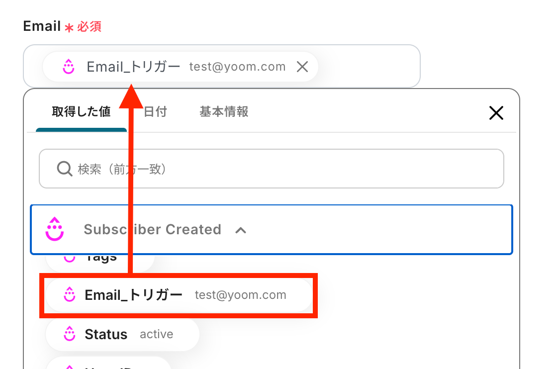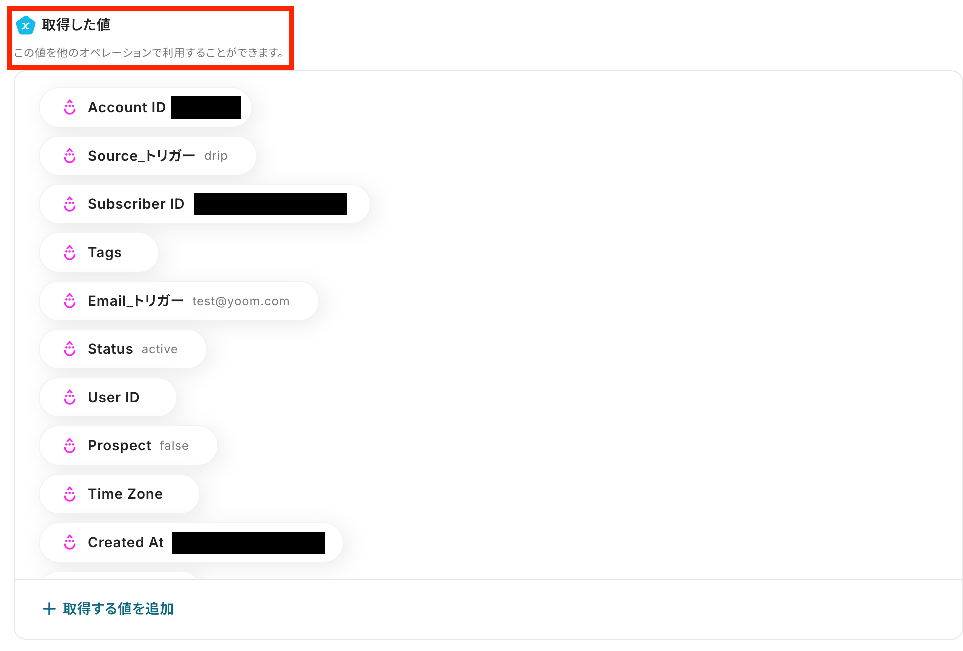 ※取得した値とは、トリガーやオペレーションにて受け取ったデータのことです。