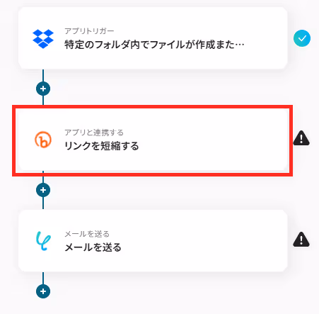Dropboxに特定のファイルが作成または更新された際に、そのファイルの共有リンクを自動で取得し、Bitlyで短縮URLを生成後、指定の宛先にメールで通知する連携です。