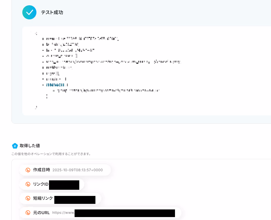取得した値とは、トリガーやオペレーション設定時に、「テスト」を実行して取得した値のことを指します。