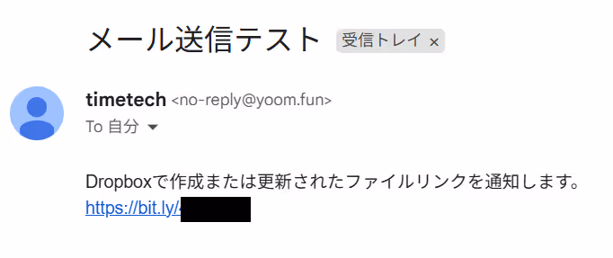 受取先に指定したメーラーを見に行ってみましょう。このようにメールが届きます。