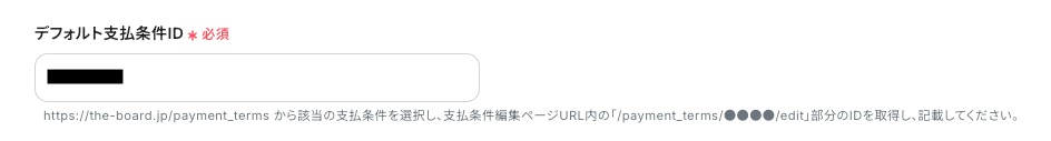 「デフォルト支払条件ID」を、支払条件一覧で確認し、手動で入力してください。