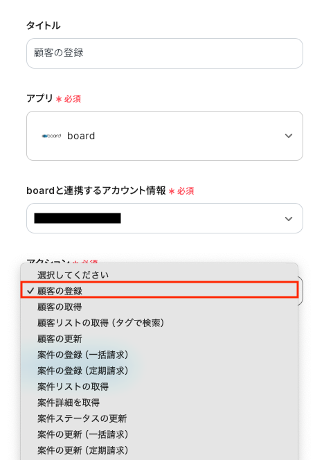 boardへの顧客登録をトリガーとして、顧客名のフォルダをDropboxに自動で作成します。