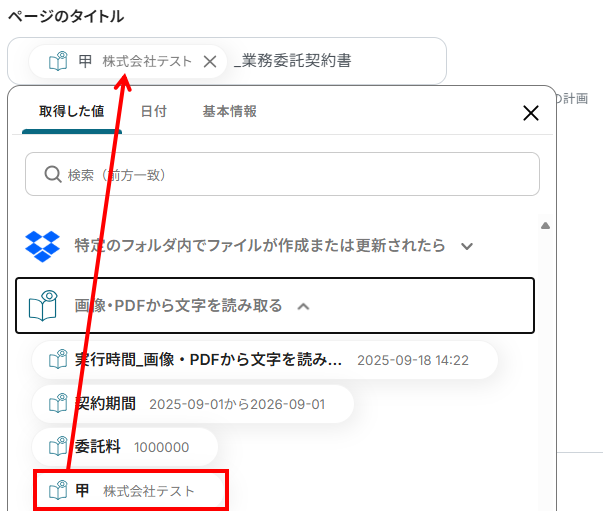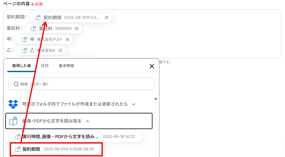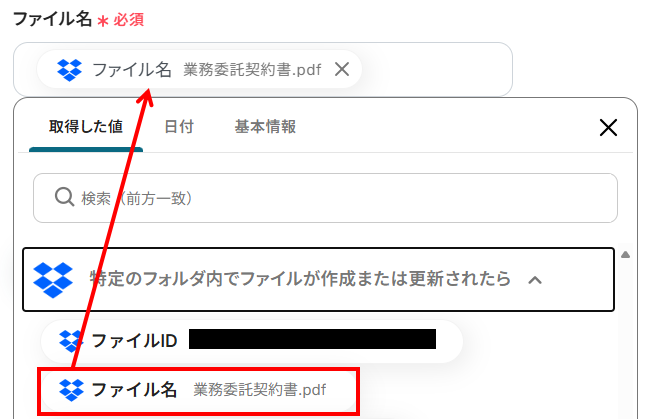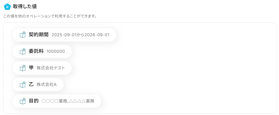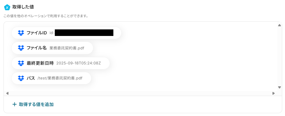 ※取得した値とは、トリガーやオペレーションにて取得した値を指すものです。