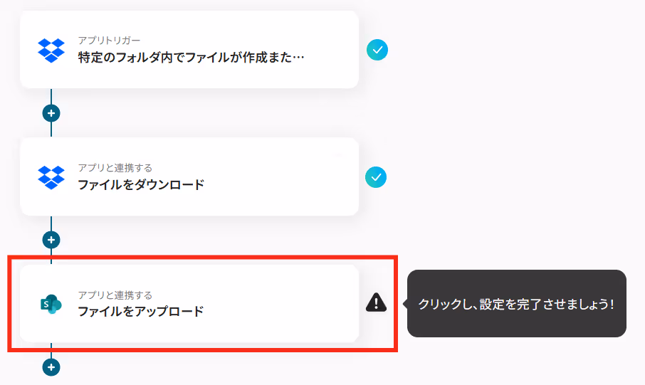 メールで届いたファイルをSharePointにアップロードした際に、Microsoft Teamsに通知を送るなど、ファイル管理と情報共有のプロセスを効率化できます。