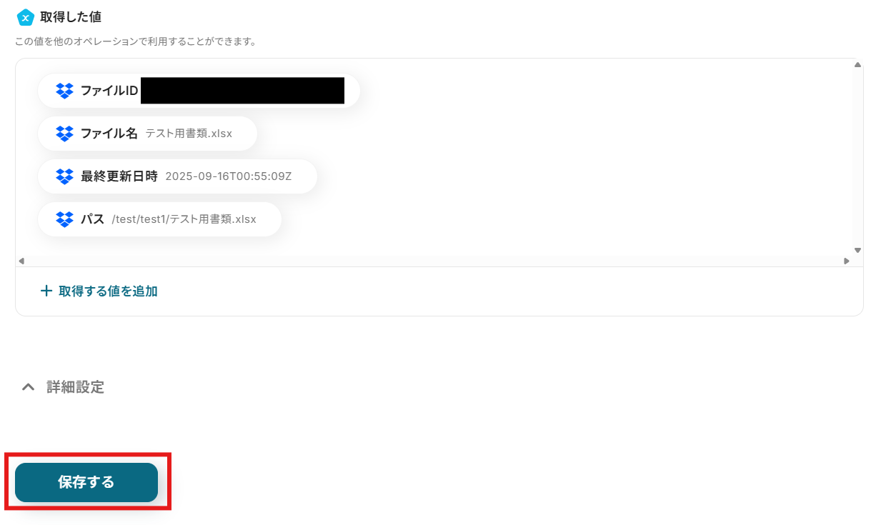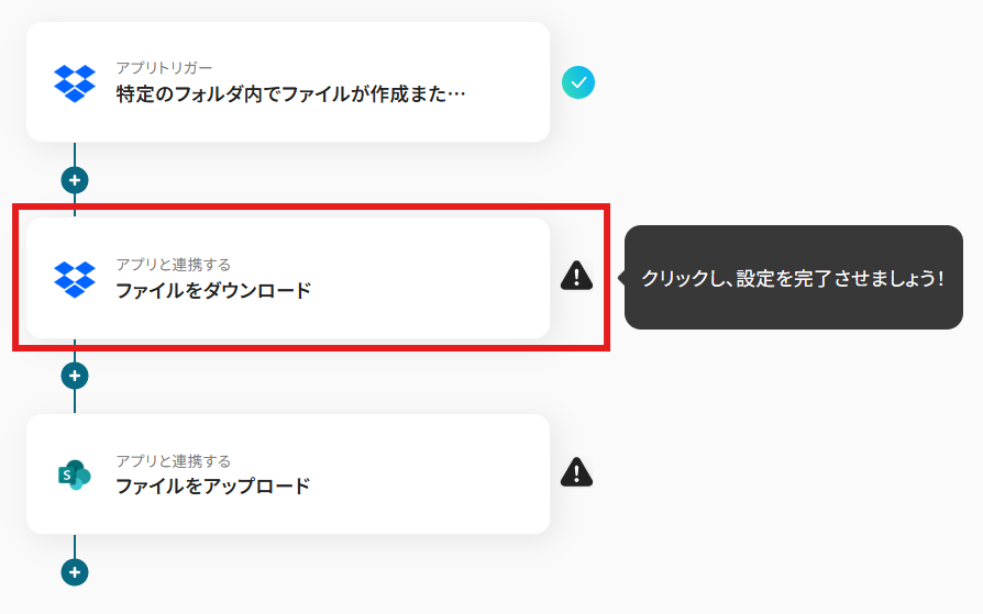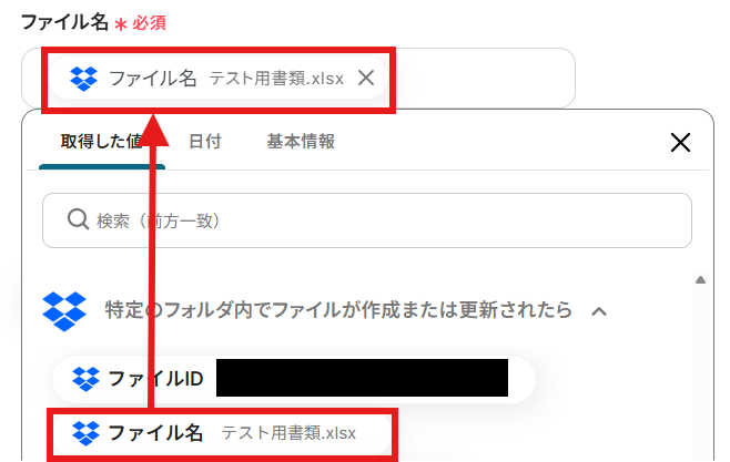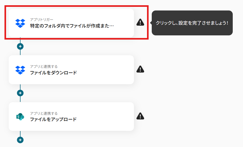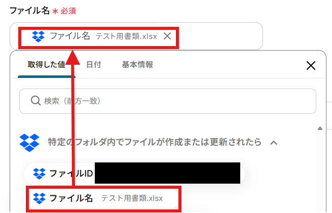 ステップ3:Dropboxで特定のフォルダ内でファイルが作成または更新されたら