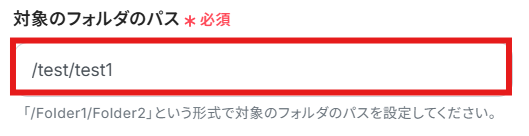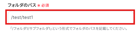 「test」フォルダ内の「test1」というフォルダに「テスト用書類.xlsx」があるので、以下のように設定しました!