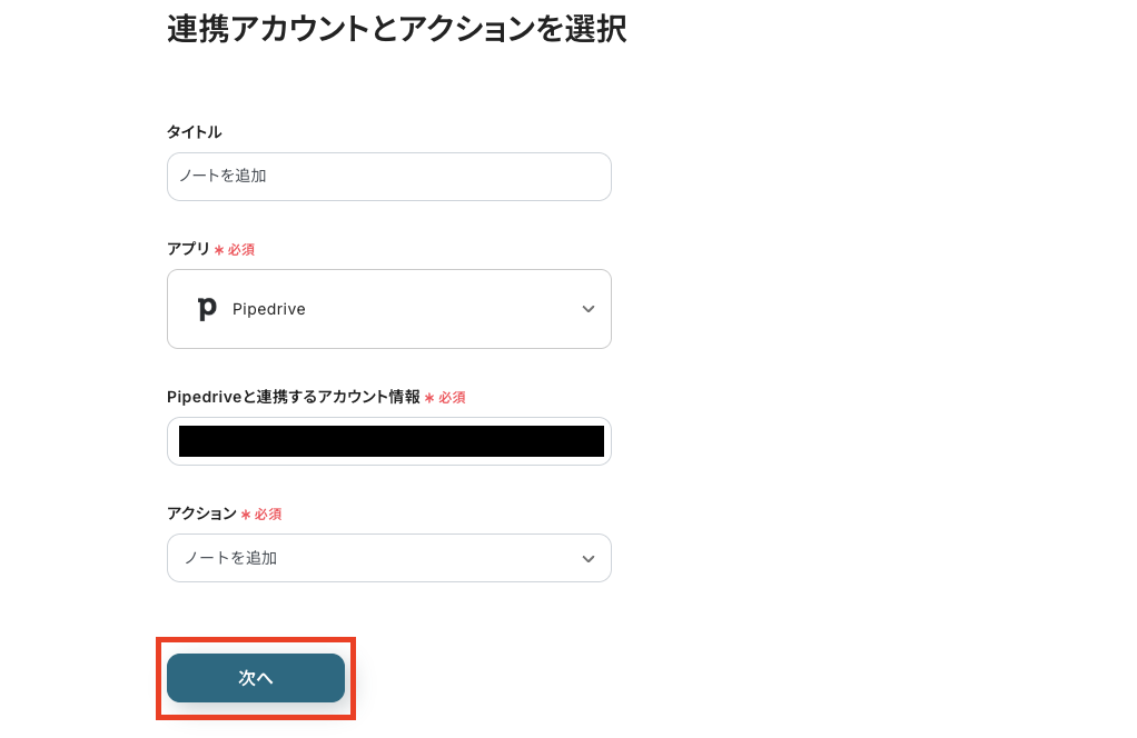 ※このフローボットでは、Pipedriveにあらかじめ登録している組織・会社名を自動検索し、合致している項目に対してノートを追加します。