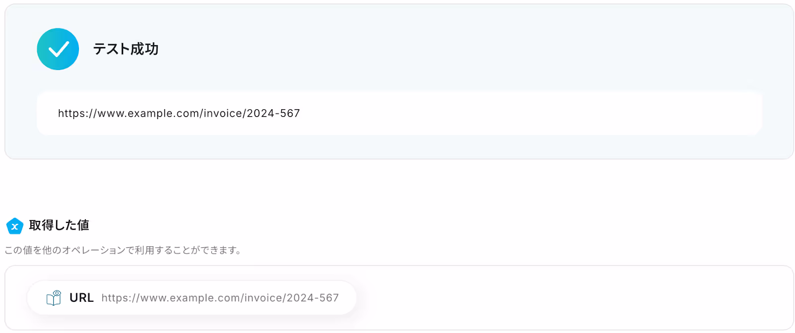テストに成功すると、OCR機能によってダウンロードしたファイルから読み取られた情報が表示されます。