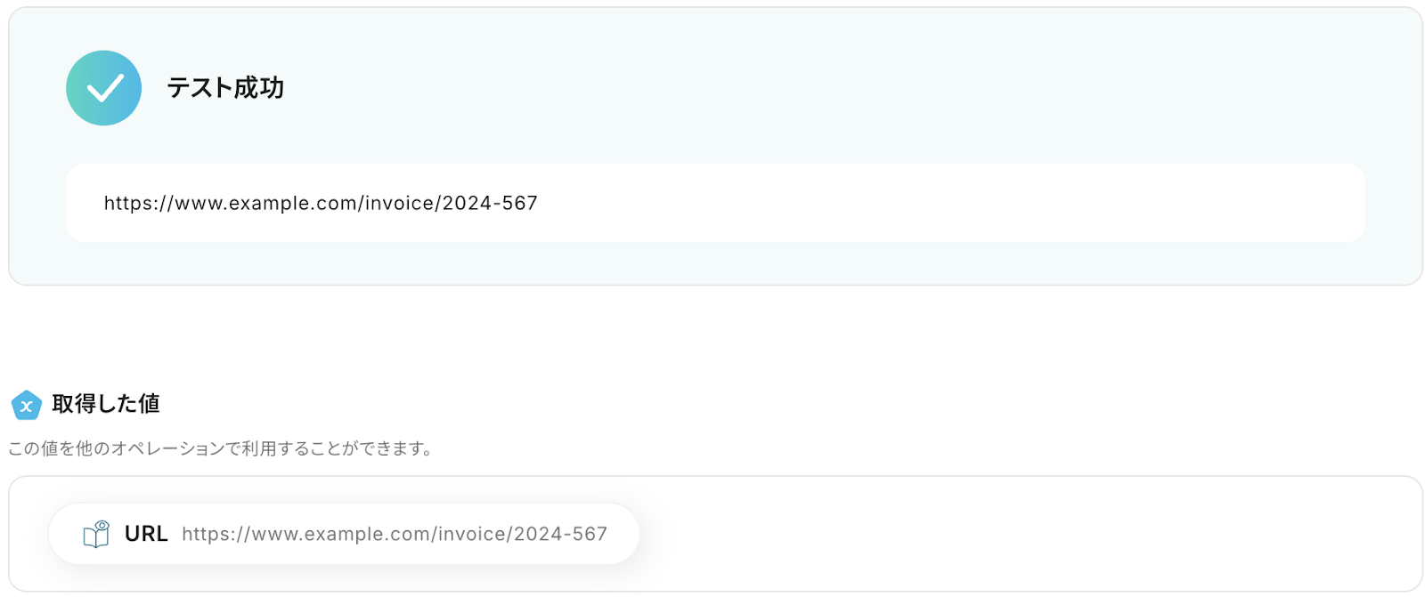 ※取得した値 とは? トリガーやオペレーション設定時に、「テスト」を実行して取得した値のことを指します。 後続のオペレーション設定時の値として利用でき、フローボットを起動するたびに変動した値となります。