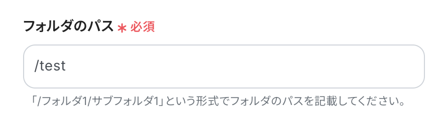 フォルダのパス ここでは、Dropbox内のどのフォルダを対象にするかを指定します。 たとえば「test」というフォルダに請求書ファイルを保存している場合は、下記のように入力してください。