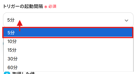 - トリガーは5分、10分、15分、30分、60分の間隔で起動間隔を選択できます。