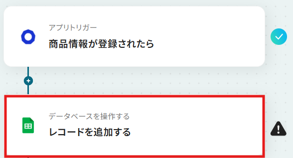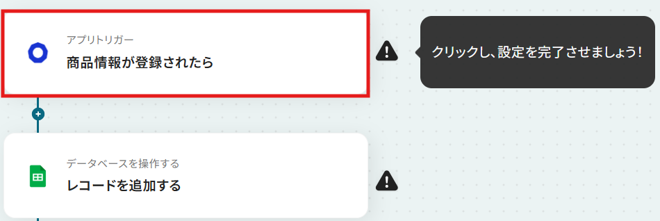 トリガーアクションは、「商品情報が登録されたら」のままで次に進みましょう!