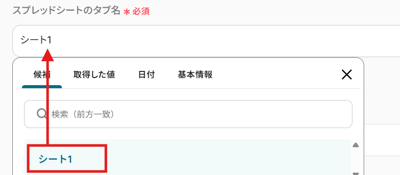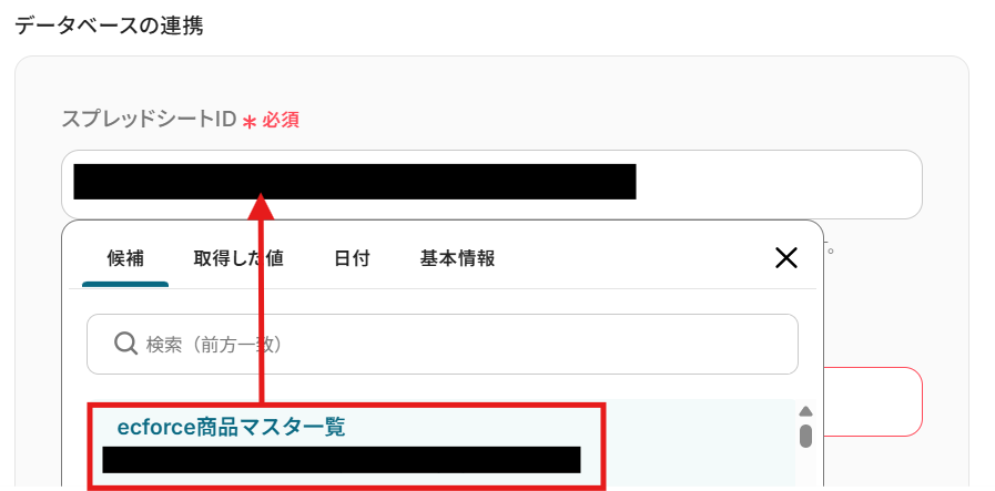 編集欄をクリックすると、Google スプレッドシートの候補が表示されるので、連携したいGoogle スプレッドシートを選んでください。