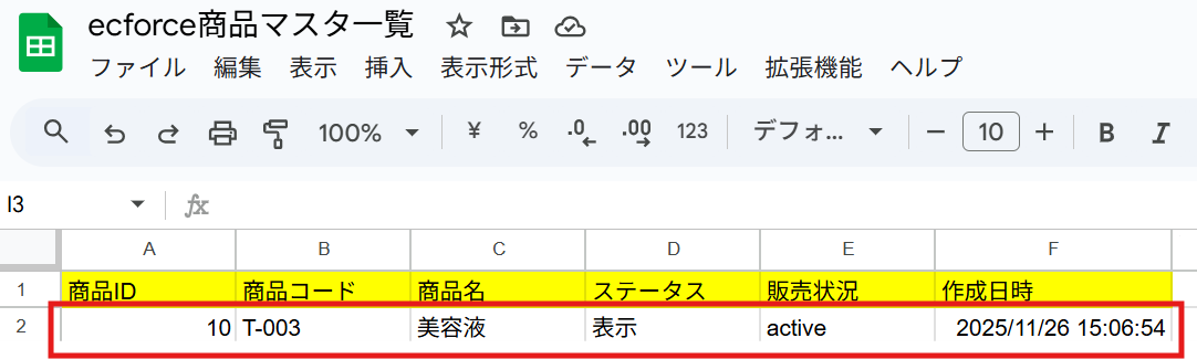 ecforceで商品情報が登録されたら、Google スプレッドシートの商品マスタへ自動追記する