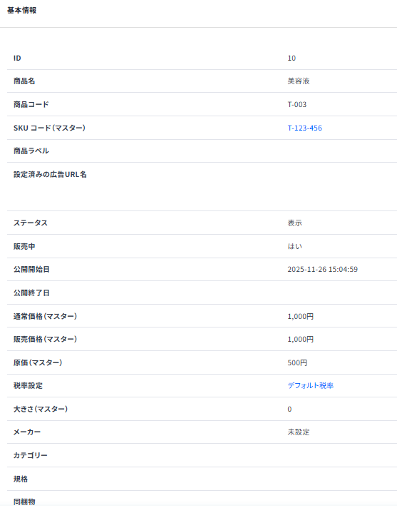 商品ID・商品コード・商品名・ステータス・販売状況・作成日時・最終更新日を連携できます!