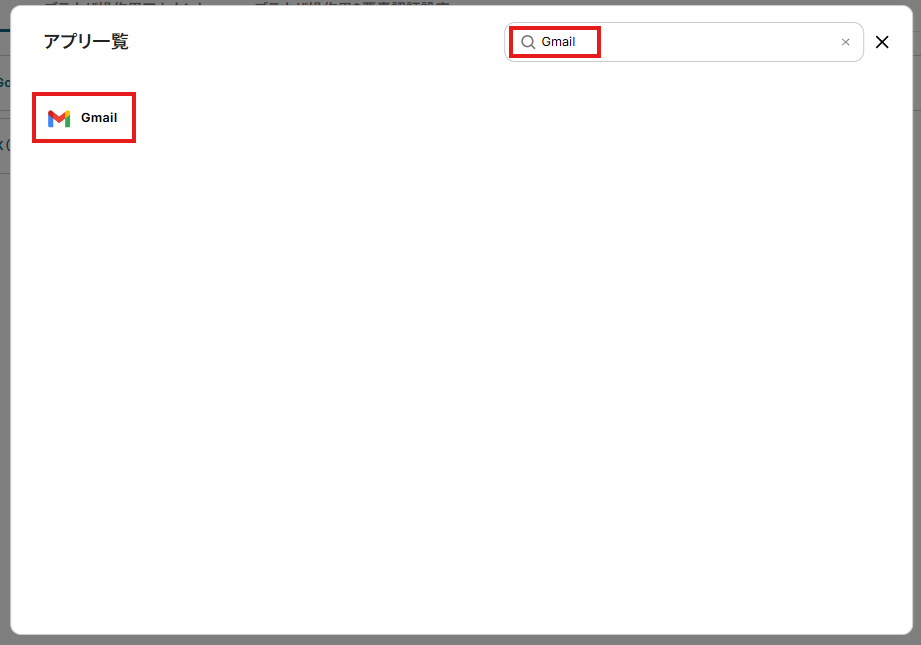 検索ボックスにGmailと入力し、Gmailのアイコンをクリックします。