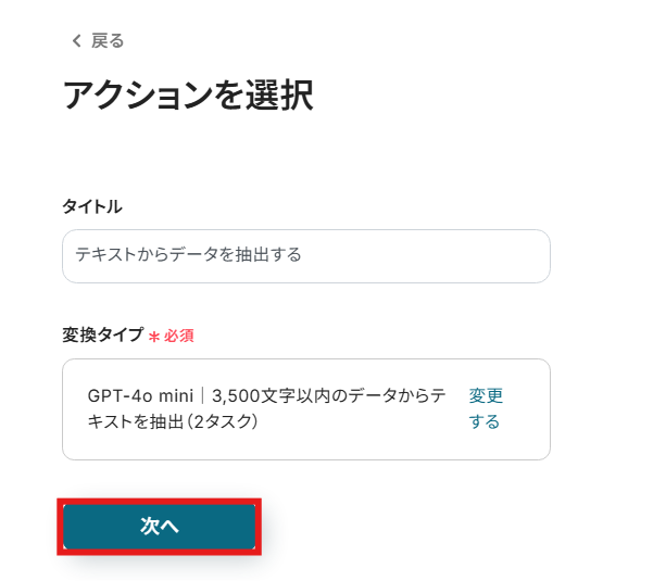 Geminiの「コンテンツを生成」アクションでは、システムプロンプトに要約のルールや文字数、出力形式などを任意で設定してください AI機能の「テキスト抽出」では、フォームの回答内容やGeminiの生成結果の中から、Memに保存したい項目を任意で設定してください ■注意事項