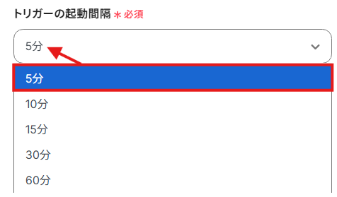 トリガーの起動間隔は、5分、10分、15分、30分、60分のいずれかで設定できます。