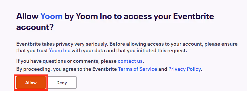 最後に、Yoomへの権限を許可するかの確認画面が表示されるので、「Allow」をクリックしましょう。