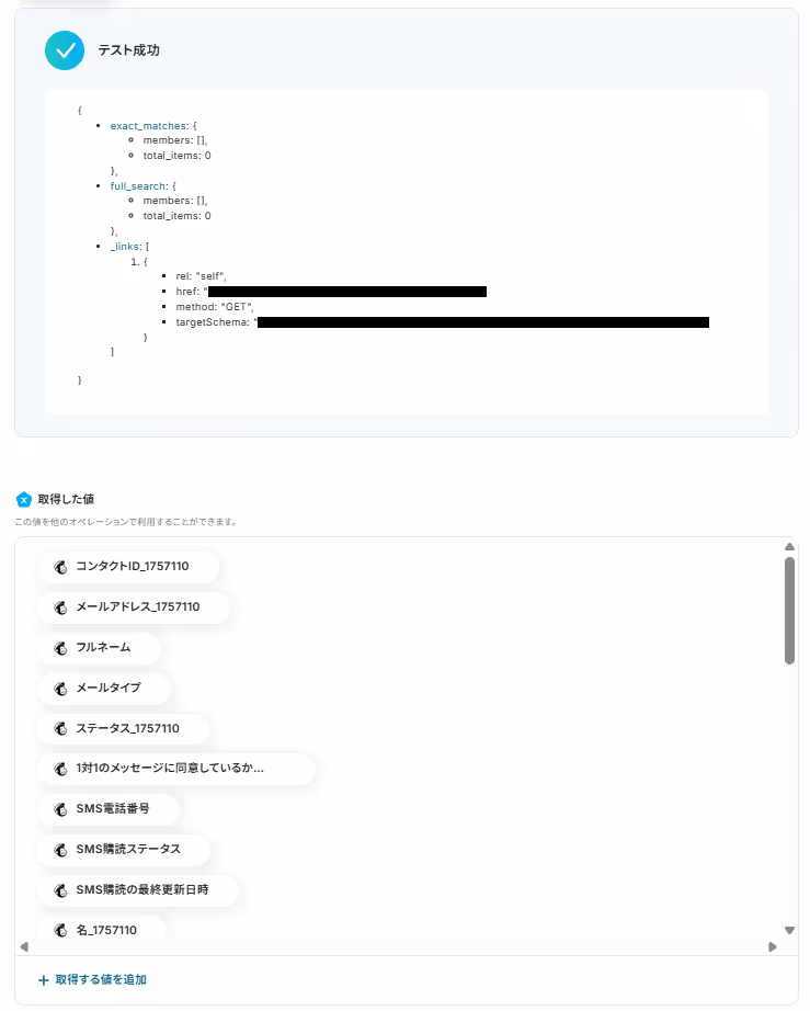 その他、連携したい項目を「取得した値」から設定しましょう。