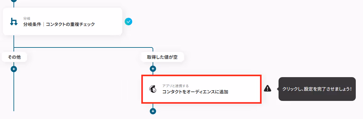 「分岐条件|コンタクトの重複チェック」を、クリックしてください。
