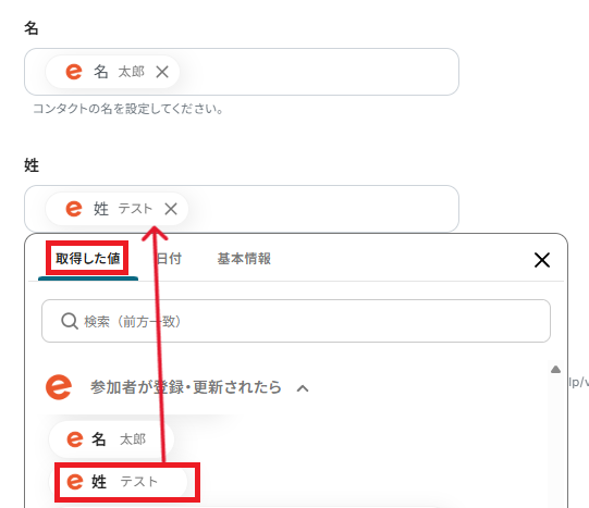 Eventbriteのトリガーアクションで連携したい項目を、取得した値に追加してください。