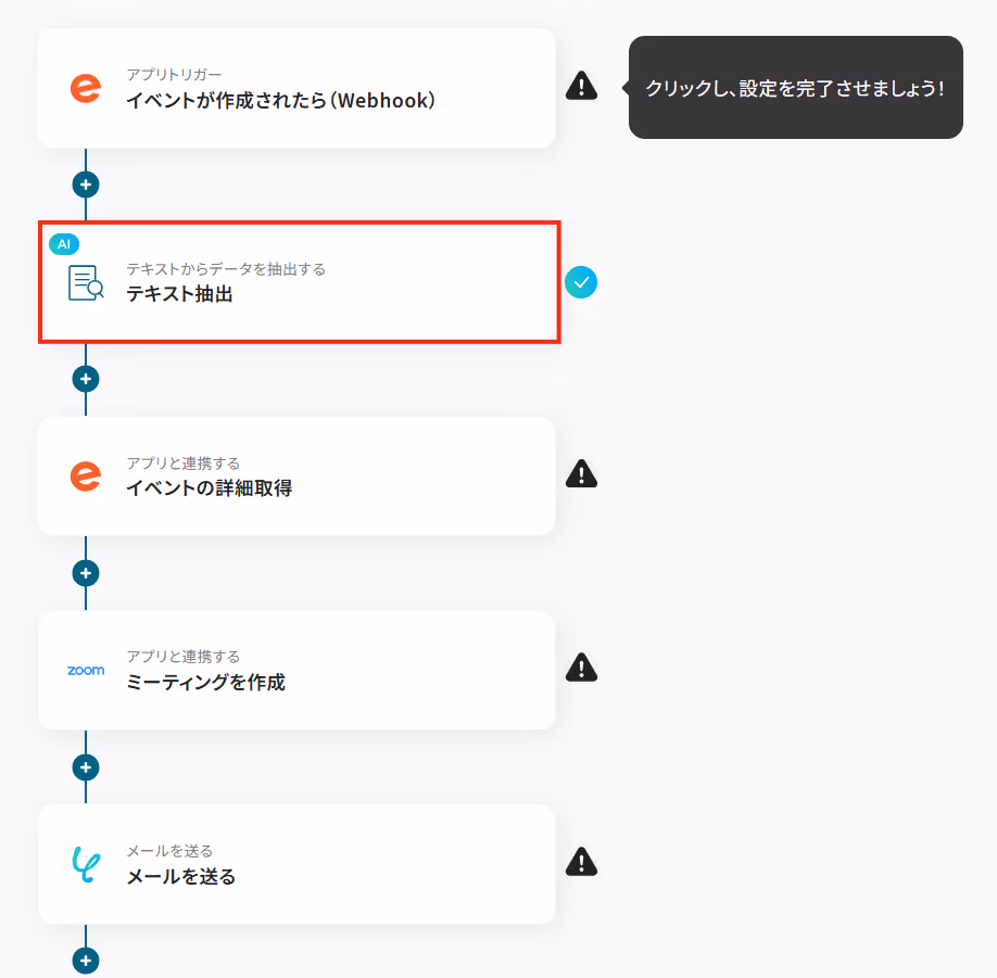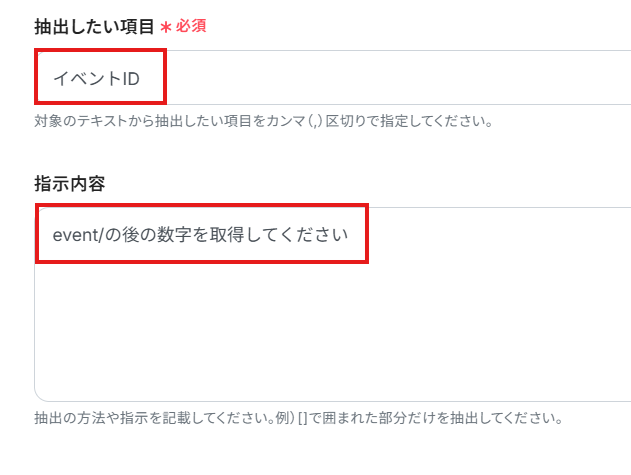 ここで抽出したテキストデータを用いて、次のステップで設定を行います。「イベントID」は直後の設定で使用するので、必ず入力しておきましょう。