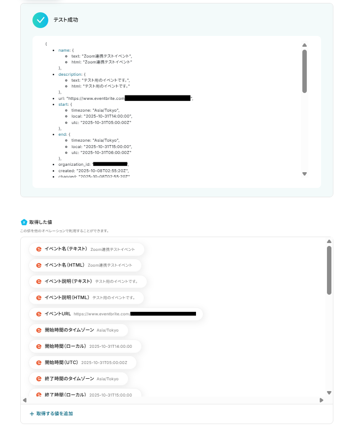 この自動化を活用すれば、<span class="mark-yellow">Zoomで特定の条件を満たすミーティングが作成された際に、その情報を基にEventbriteのイベントページが自動で下書き作成される</span>ため、イベント公開までのプロセスを効率化し、転記ミスなく迅速な情報展開を実現できます。