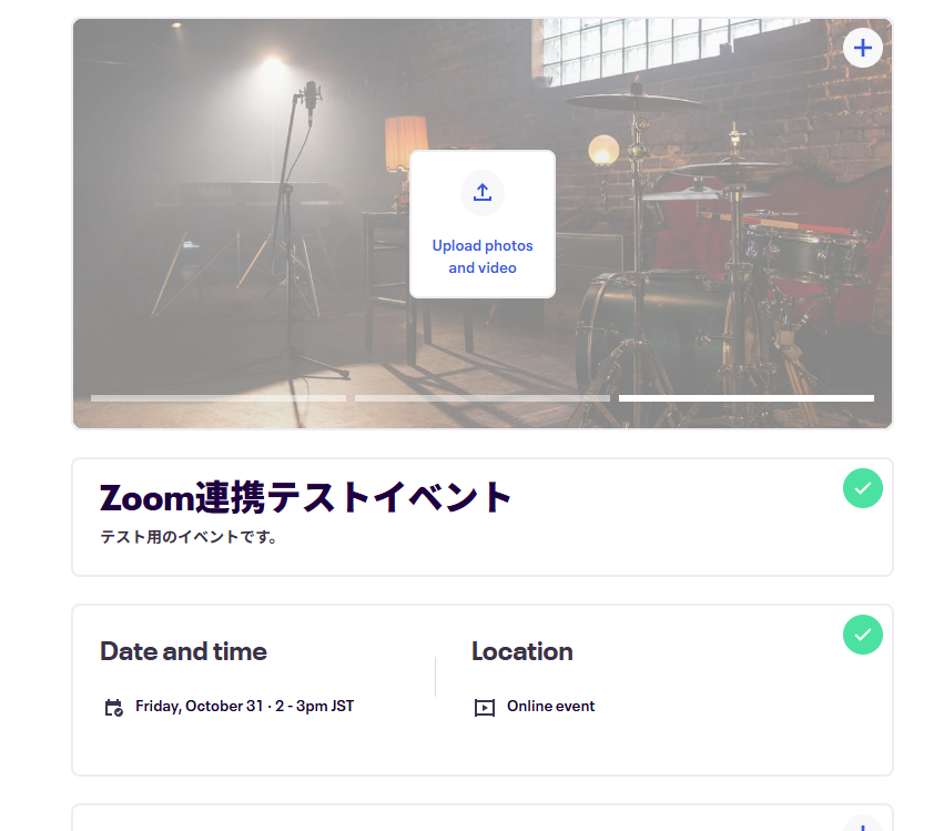 テスト用のため、イベントの内容は架空の情報(「株式会社test」や「テスト太郎」など)でOKです!