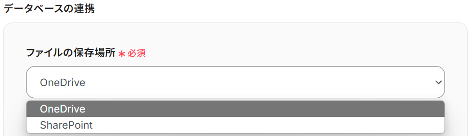 画面を下に進み、「データベースの連携」を入力しましょう。