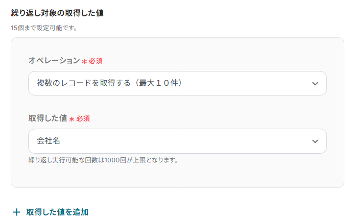 「繰り返し対象の取得した値」にはカスタム可能なので、プルダウンから運用状況に沿った内容を選択しましょう。