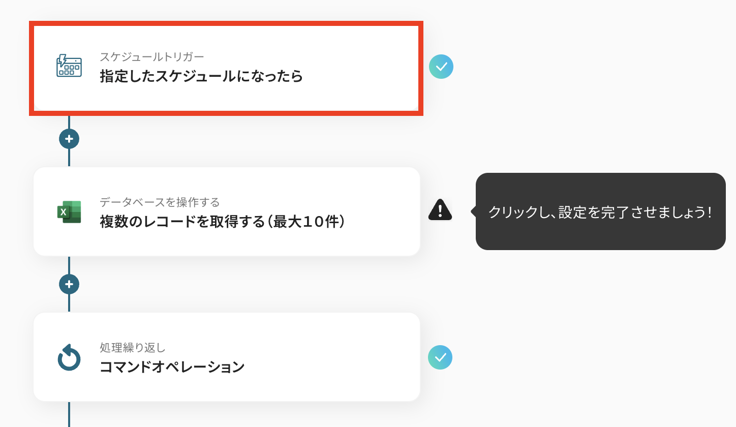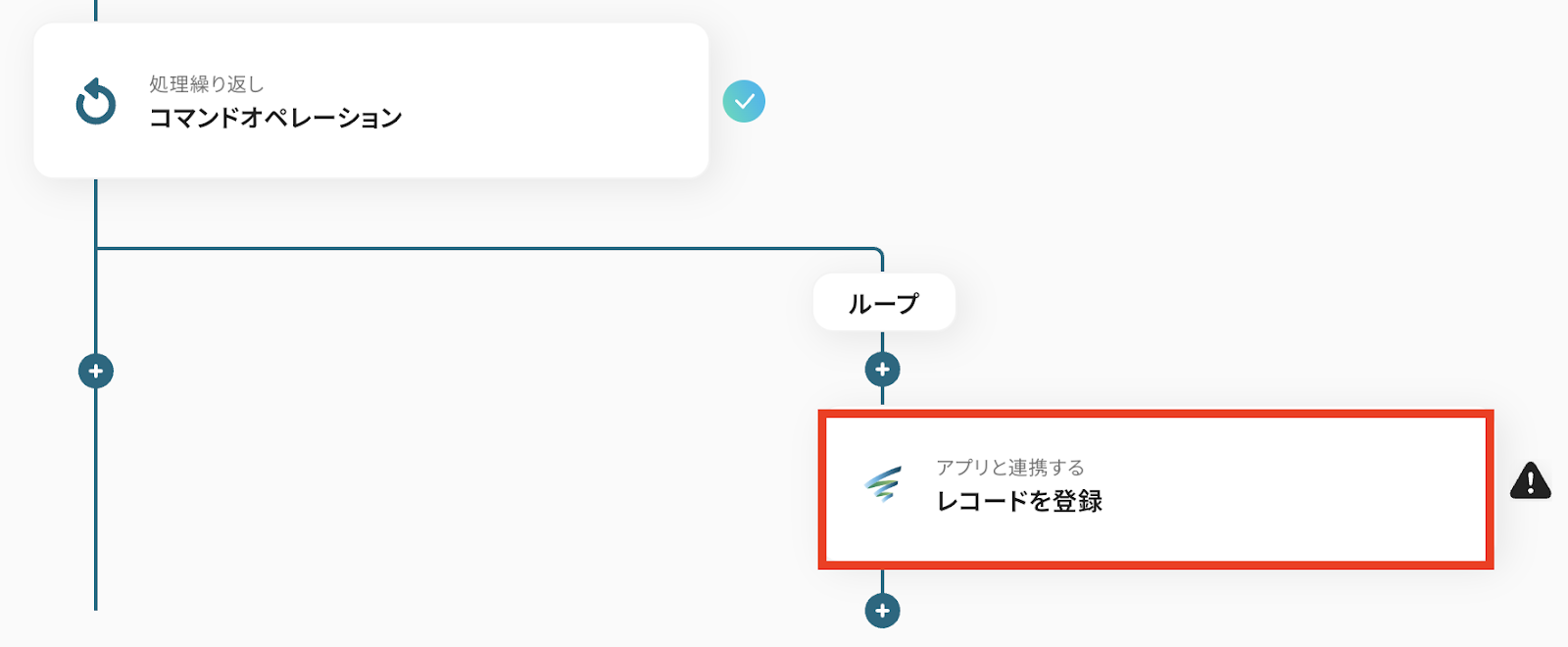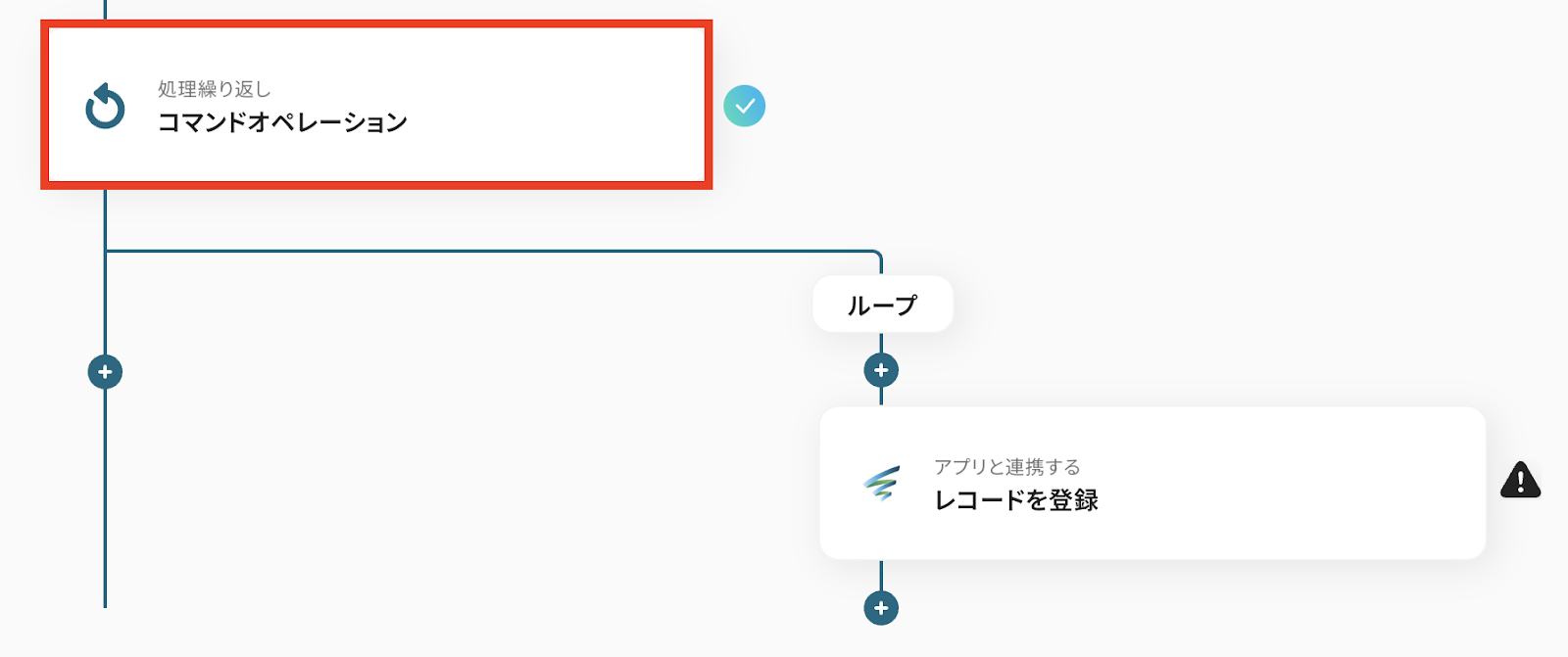 ・「同じ処理を繰り返す」オペレーション間の操作は、チームプラン・サクセスプランでのみご利用いただける機能となっております。フリープラン・ミニプランの場合は設定しているフローボットのオペレーションやデータコネクトはエラーとなりますので、ご注意ください。