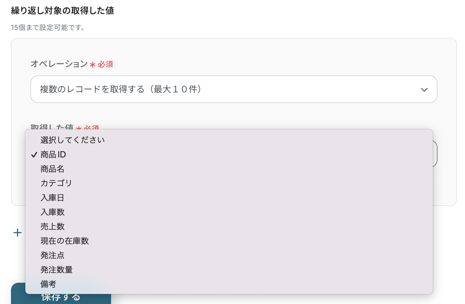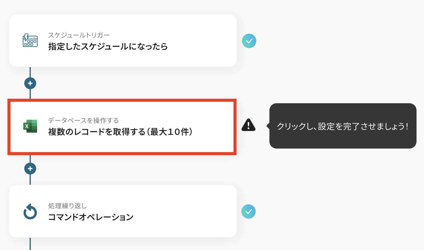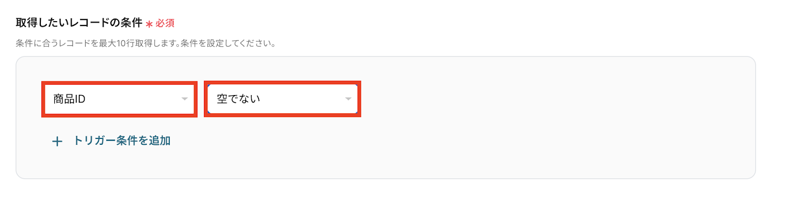 「実行アクション」:「複数のレコードを取得する(最大10件)」を選択