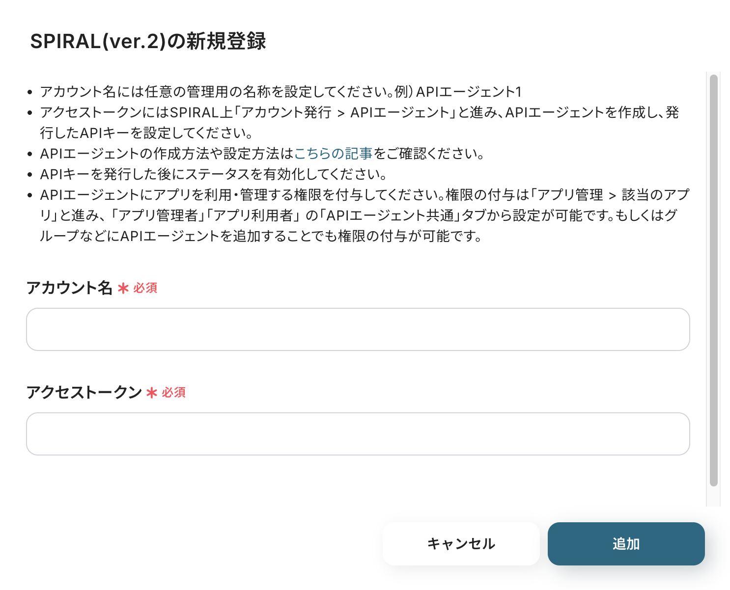 入力が完了したら「追加」をクリックして、SPIRALも連携完了です。