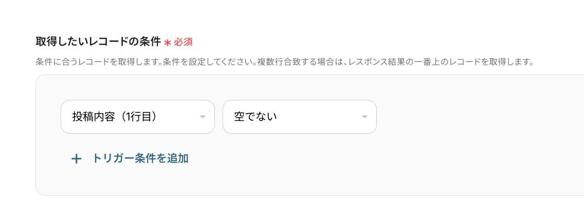ここでは、先ほど設定したMicrosoft Excelのシートから取得するレコード情報を、条件で指定していきます。