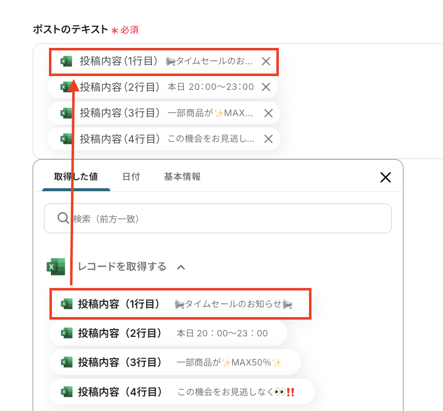 また、特定の日付やステータスの投稿のみをポストするなど、Microsoft Excelのデータに応じた柔軟な条件分岐も設定できますよ!