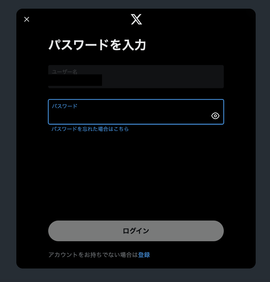 次に、X(Twitter)アカウントのパスワードを入力しましょう。
