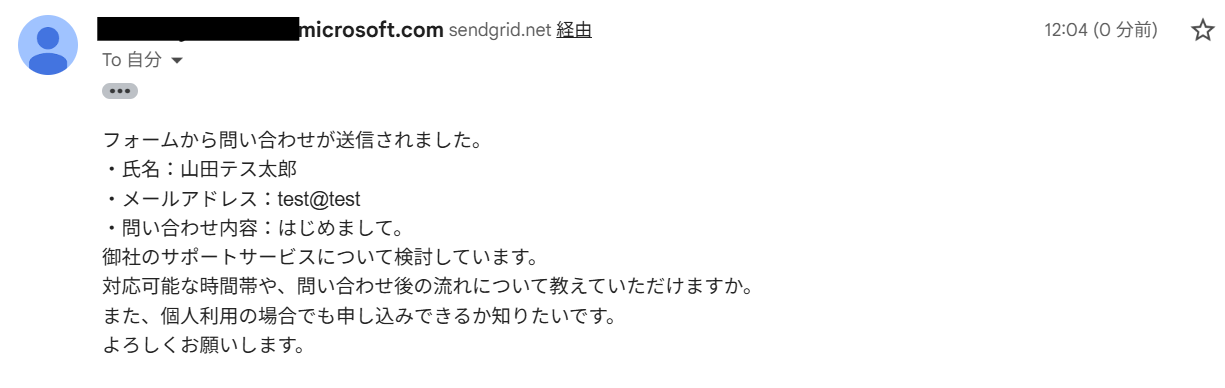 - フォームが送信されると、その内容をもとにSendGridから自動でメールが送信されるため、これまで手作業で行っていた通知業務の時間を短縮できます。