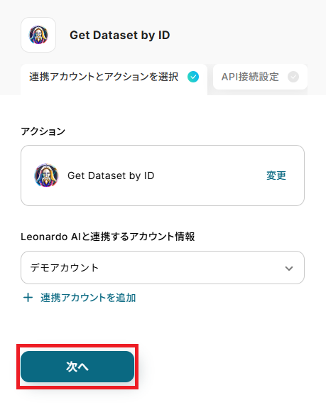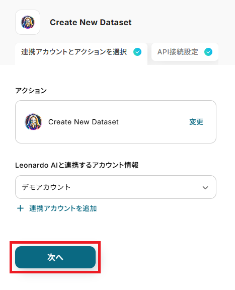 再度、Leonardo AIと連携するアカウントに間違いがないかを確認し、「次へ」をクリックしましょう。