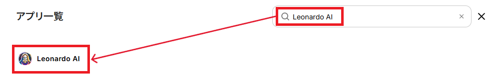 アプリ一覧の検索窓からLeonardo AIを検索し、クリックします