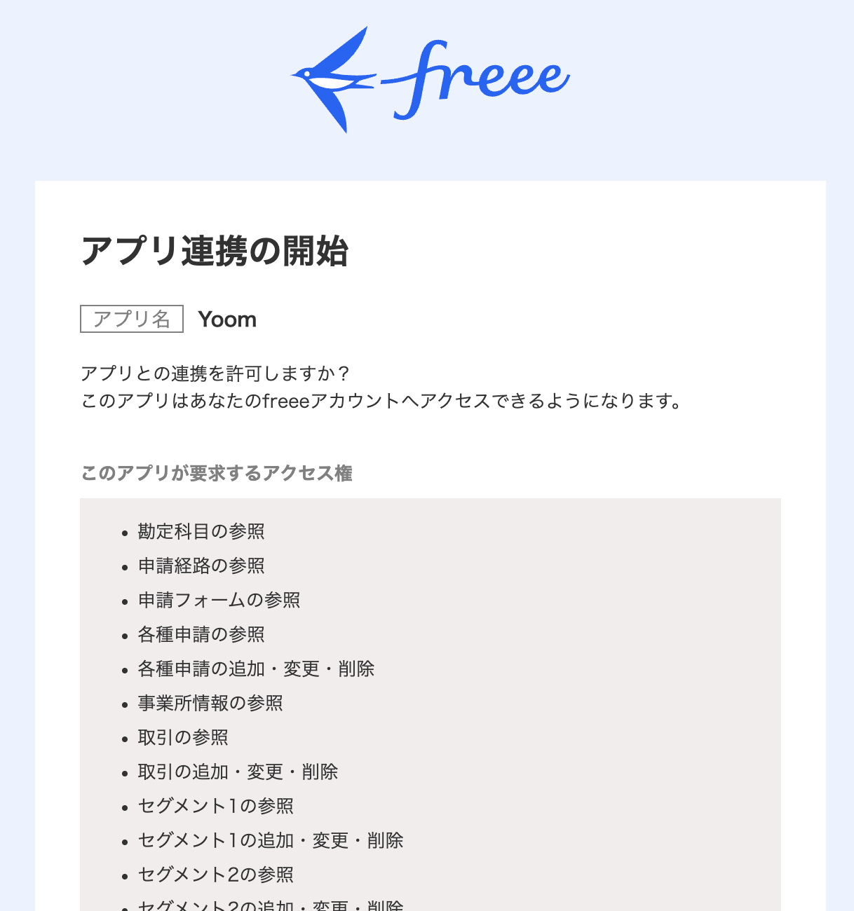 Yoomにはfreee会計で作成された申請情報を自動で取得する業務フロー自動化のテンプレートが用意されています。