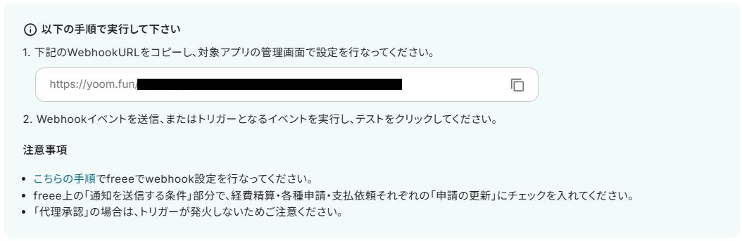 3.表示された画面で、以下画像の手順・注意事項に沿って、Webhookの設定をします。